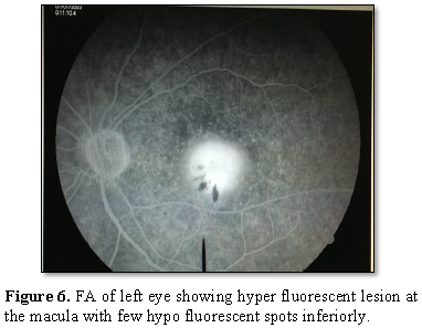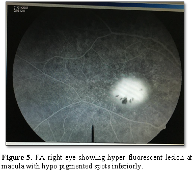 angiography showed hyper fluorescent lesion in the macular region approximately