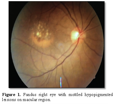 disc diameter size with central pigment spot. The onset was primarily in 30 to