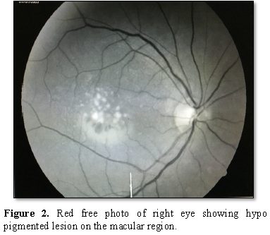 central foveolar hypo fluorescence. The pathology was found in the retinal