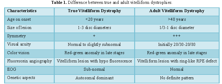 from true vitelliform dystrophy as Best’s disease (Table 1).