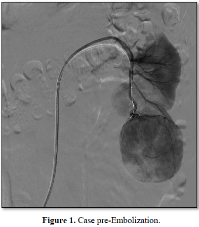 In this study we have chosen 3 patients and through the RENAL SCORE we have planned the procedure in a multidisciplinary team. The first patient is a 46 years old woman, with a tumor of 6.2 cm, entirely exophytic, localized on the lower pole of the left kidney. She has no significant comorbidity. She has been staged with TC chest-abdomen, without evidence of venous thrombus or metastasis (cT1b; N0; V0; M0). The second patient is a 64 years old woman, with a tumor of 4.1 cm, partially exophytic, localized on the superior pole of the right kidney. In anamnesis she has hypertension, obesity and hepatopathy HCV+. She has been staged with TC chest-abdomen, without evidence of venous thrombus or metastasis (cT1b; N0; V0; M0). The third patient is a 55 years old man, with a tumor of 4.8 cm, almost entirely exophytic and near to collecting system (5 mm), of the superior pole of the right kidney. In anamnesis he has only GERD. He has been staged with TC chest-abdomen, without evidence of venous thrombus or metastasis (cT1b; N0; V0; M0). At first renal arteriography is made to visualize the arterial vascularization, focused on the tumoral artery that is catheterized super selectively. The tumor and its artery is embolized with Onyx. The second time of the procedure performed is the RAPN.
