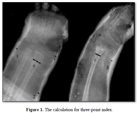 Dividing the sums by the contact length of the fracture fragments in each plane provides proportionality for the index, which prevents measurement errors due to magnification of the plain radiographs [7].