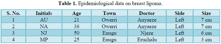 (2016) Lipoma of the breast: An uncommon occurrence. Niger J Surg Sci 26: