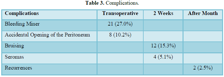 hernias (2.5%). At 15 days after surgery, 93.3% of the operated did not