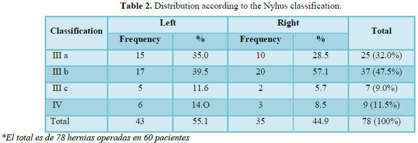 classified as Nyhus III and IV. Exclusion criteria: Patients with previous