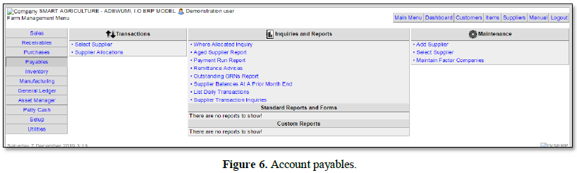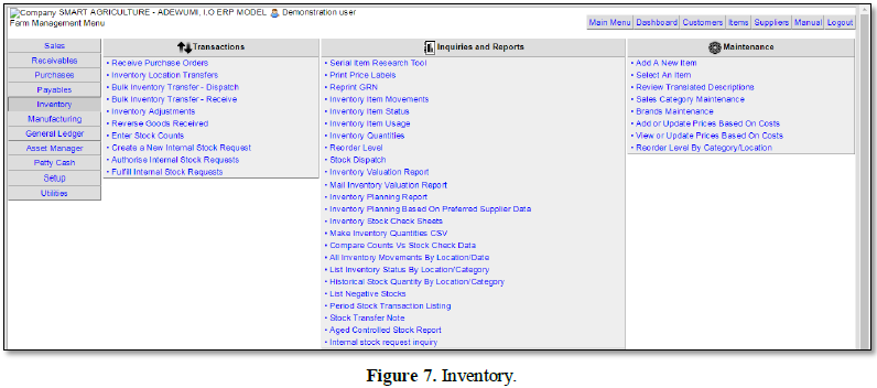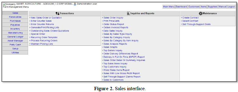 Many researchers have investigated the adoption of smart agriculture into agricultural sector in Nigeria and beyond. Agricultural operations and production these days is a complex administrative errand that forces stringent necessities on farm management data frameworks. In different sectors, enterprise resource planning (ERP) frameworks are broadly actualized to meet such prerequisites [1]. Vendouw et al. [2] has discovered that, to guarantee the adequacy and proficiency of business forms, data must be consistently caught, altered and imparted. Enterprise information systems bolster the handling of data at various levels extending from operational to key. This simply involves (i) agricultural mechanization strategic frameworks, (ii) Enterprise management frameworks and (iii) business insight applications.