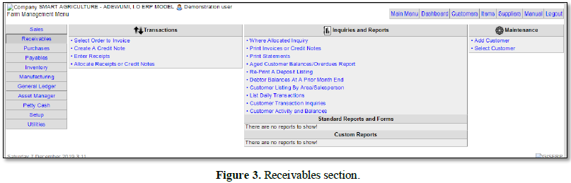 The focus of this research work is to develop a software application that will help local farmers in the management of their farm inventory, production or manufacturing process, accounting, auditing, sales and personnel management.