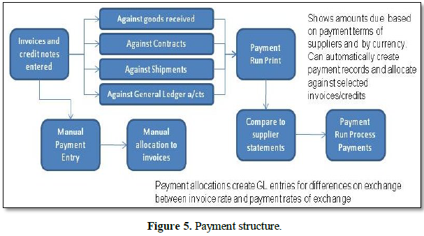 · Full on-screen inquiry on a supplier’s account, complete with a general ledger breakdown of how each invoice and debit note (supplier credit note) was posted. Inquiries on payments made will show how a payment was allocated to invoices and the difference on exchange attributable to each invoice (Figure 4).