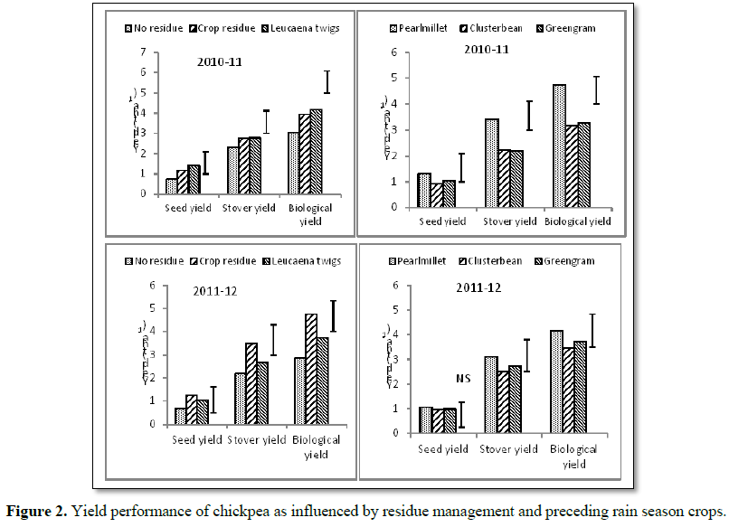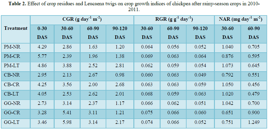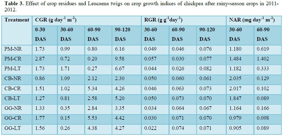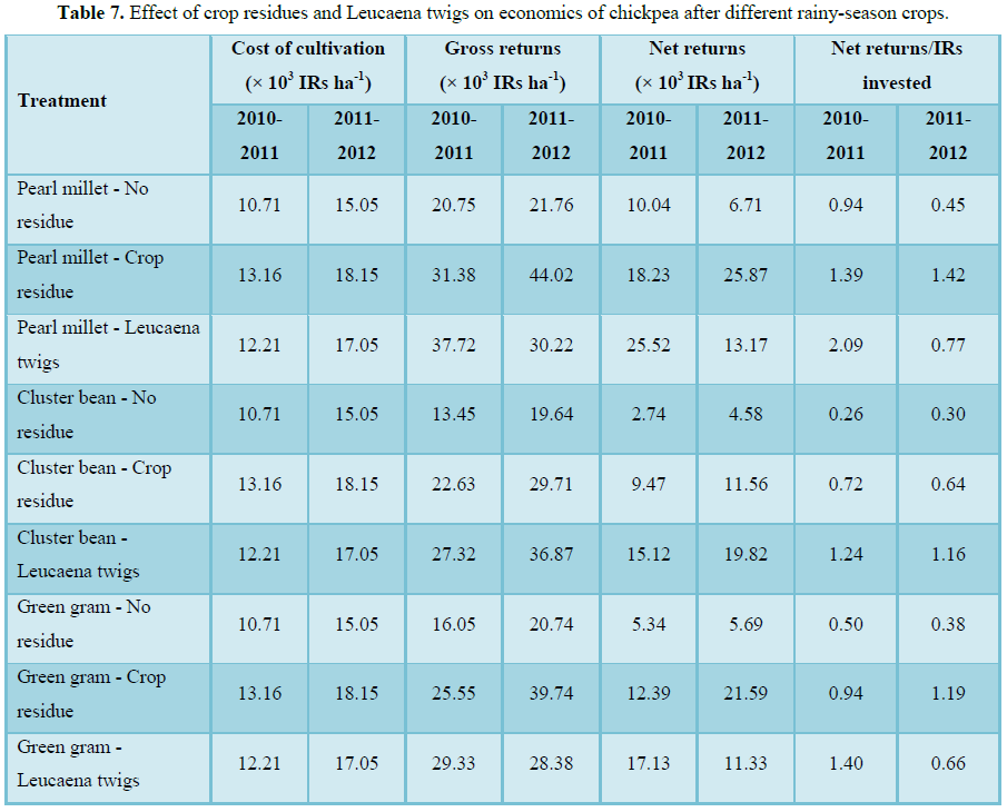 Chickpea after pearl millet with crop residues or Leucaena twigs resulted