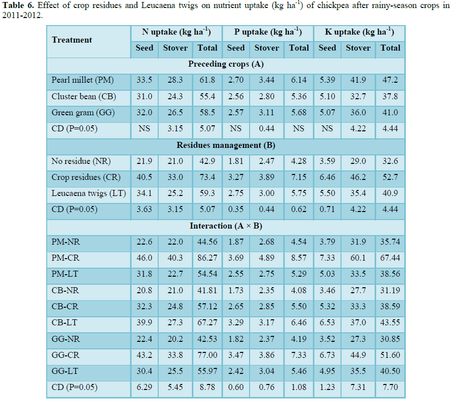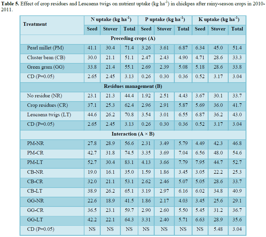 residues in 2011-2012. The same trend was followed for nutrient uptake.