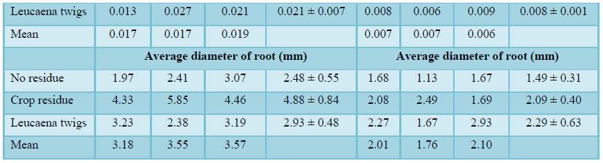 residue, crop residue and Leucaena twigs mulching. The rainy season crops and