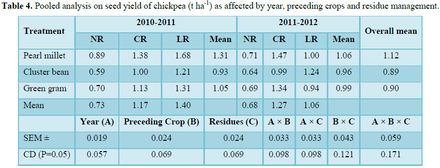 significant yearly variations on seed yield of chickpea. Pearl millet as