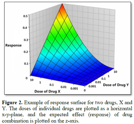 drug 1 at dose y1 produced a response R1, drug 2 at dose