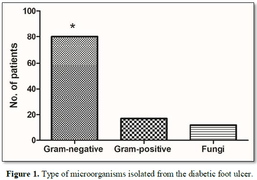 prevalence of DFU. Eighty patients had a gram -ve bacterial infection and 17