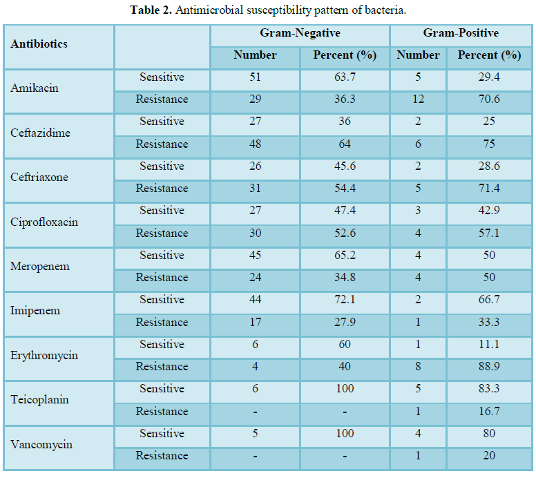 was common. Gram-negative bacteria showed maximum sensitivity to Amikacin in 51