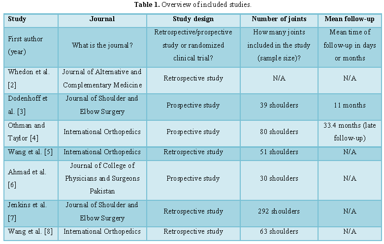 included studies that were measuring changes in range of motion, pain scores,
