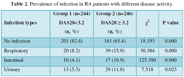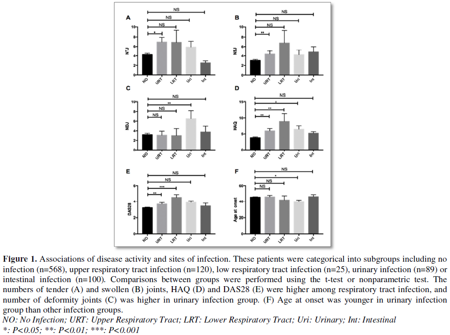 on. Patients with respiratory tract infection had higher DAS28 and more