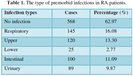 onset of RA. Only premorbid infections which were diagnosed by physicians were
