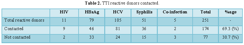 malaria parasite. All the 251 TTI reactive donors were informed telephonically