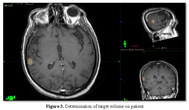 The aim of the treatment of brain metastases is palliation. Long-term survival is expected in some patient groups. It is possible to treat the diseased area locally without damaging the healthy tissues. Stereotactic radiotherapy is a form of treatment in which a high dose of X-ray is usually delivered to the small volume of the diseased area within strict accuracy. Complications in normal tissue can also occur with treatment transfer [4]. The goal of stereotactic radiotherapy for brain tumors is to fully treat the target tumor and not to damage healthy tissue. Therefore, it is important to clearly identify the diseased area [5].