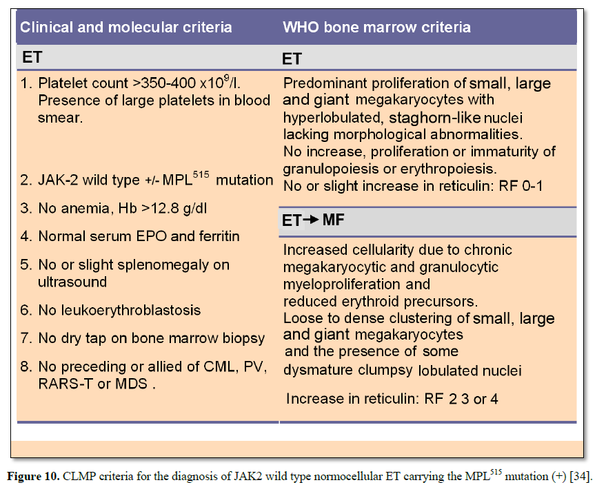 [7] have defined in 2002 normocellular “true” ET as a distinct MPN entity