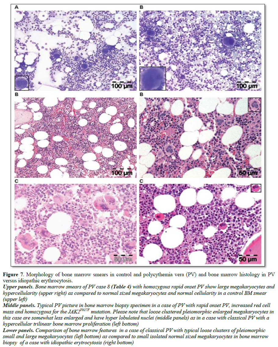 PV are similarly featured by medium sized to large (pleomorphic) megakaryocytes