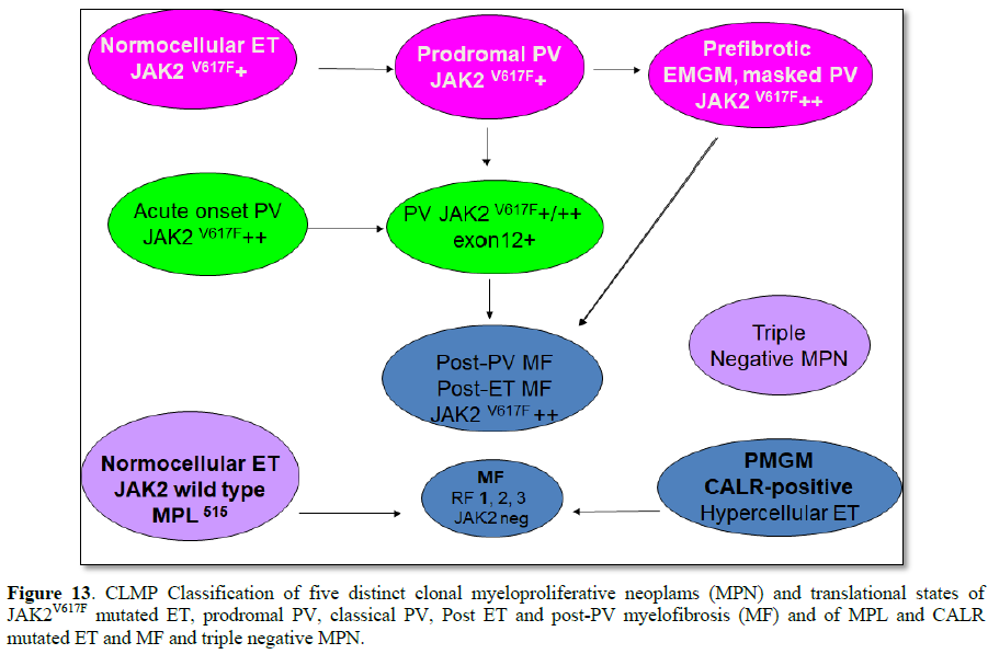staging of the early, overt and advanced MPDs ET, PV and CMGM [8,9].