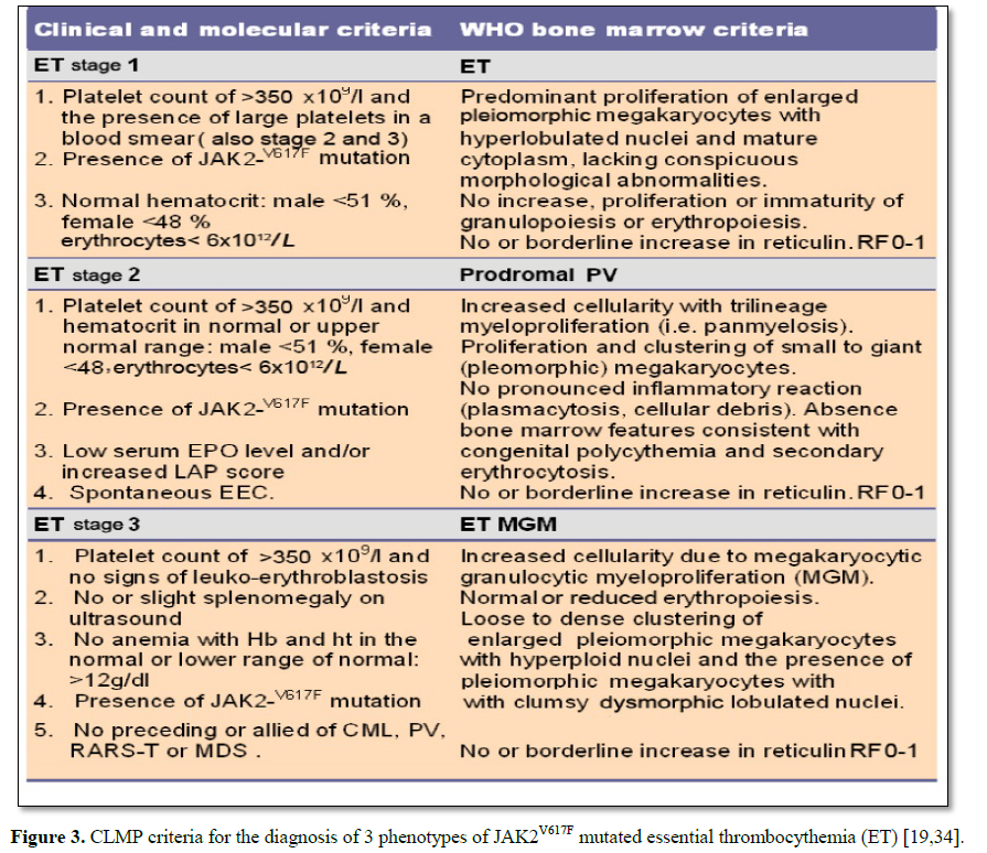 Clinical, laboratory, molecular and pathologic (CLMP) criteria for the JAK2V617F