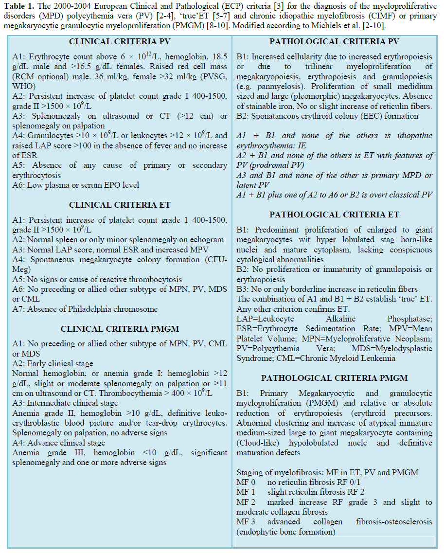 diagnostic criteria of myeloproliferative disorders and the molecular etiology