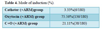 Conclusion: Our study indicates that management of candidates for VBAC with induction resulted in a high VBAC rate and favorable perinatal outcomes. Induction using a balloon catheter or oxytocin in women with previous CS seems to be safe under our protocol. There is a higher success rate of vaginal birth in 40-40+6 weeks induction group than other gestational week’s groups.