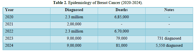 Epidemiology of Breast Cancer (2020-2024): [14] (Table 2 & Figures 5 & 6)
