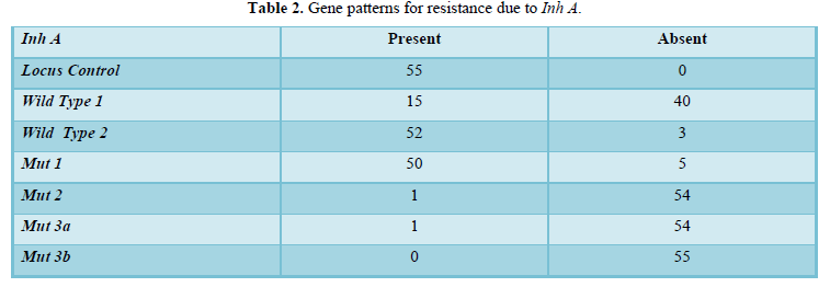 All the above instances discouraged the use of Isoniazid even at higher doses. There were 55 cases of Isoniazid resistance due to Inh A (Table 2).