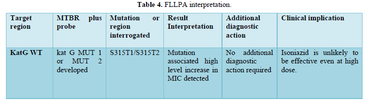 Isoniazid monoresistance accounts 16 % of all notified TB cases. There was no particular treatment in the previous guidelines. The genes causing Isoniazid resistance are enoyl acyl carrier Protein(acp), reductase (Inh A), catalase–peroxidase (Kat G), alkyl hydroperoxide reductase (ahpC), oxidative stress regulator (oxy R), β-Ketocylacyl carrier protein synthase (Kas A). Of all the above-mentioned genes FLLPA will be identifying only for Inh A and Kat G genes for Isoniazid.