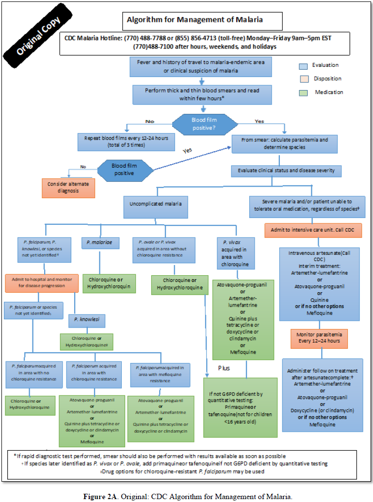 algorithm for management of malaria which prepared by the CDC and how/why it