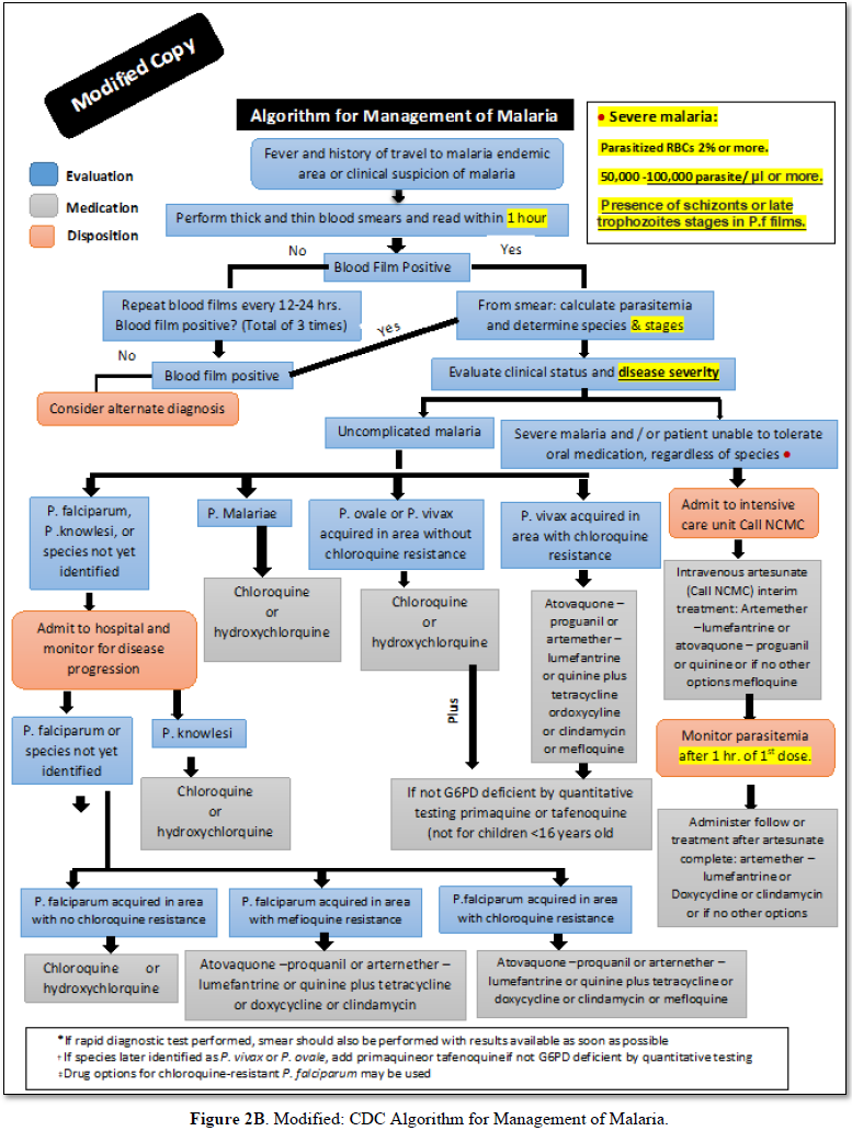 management of malaria is as given in Figures 2A, 2B and 2C).