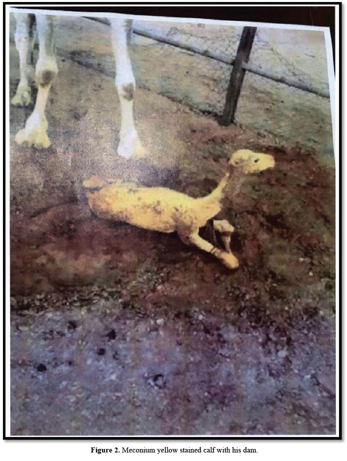 In general meconium-stained calves are usually common with mal presentation, torsions and even larger calves, backwards calf or breech birth also facilitate meconium expulsion during delivery [5]. Nutritional issues such as low-grade calcium deficiencies can lead to lack of uterine contraction and delayed parturition. Meconium is considered a pretty sterile substance but aspirating it can cause damage to the lungs and predispose calf’s sickness, so for this reason it is good to mark down your calving records “calf meconium stained”.