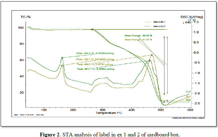 observed under UV cabinet. Thermal properties of label were studied using STA.