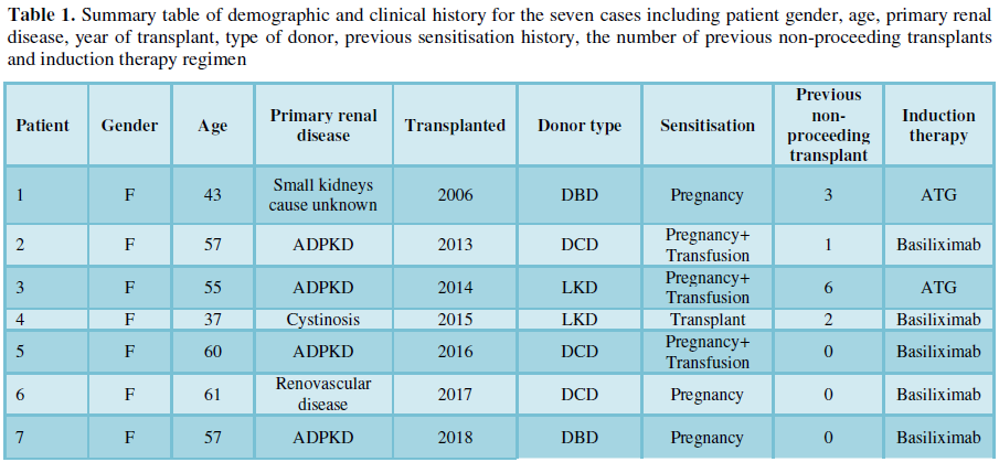 transplant due to the positive pre-transplant donor cross-match. Patient 7 was