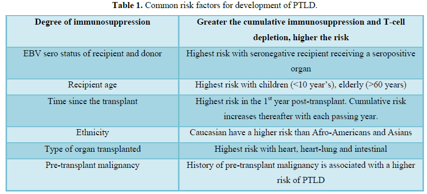 5. Al-Mansour Z, Nelson BP, Evens AM (2013) Post-transplant lymphoproliferative disease (PTLD): Risk factors, diagnosis and current treatment strategies. Curr Hematol Malig Rep 8: 173-183.
