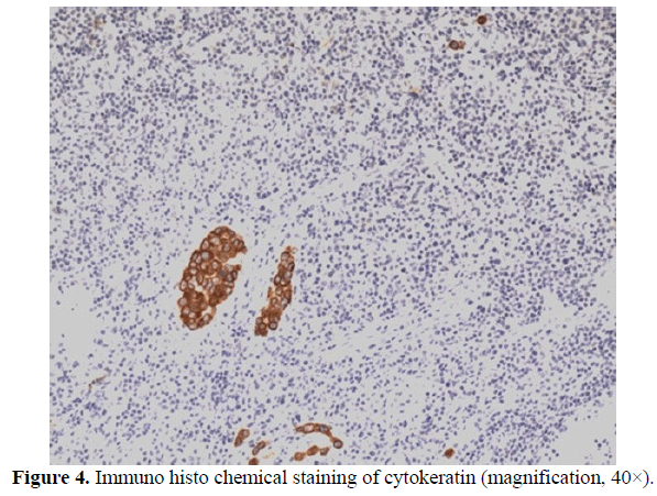 Immunohistochemistry are typically adopted to confirm the diagnosis of SCC, particularly strong staining for CK5/6, p40, and p63 [8-11]. However, immunohistochemistry is not applicable in discriminating primary SCCs from different tumor sites, although it may suggest the most likely site in most cases with adenocarcinoma of unknown primary origin [10].