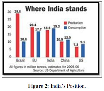 In India, sugar industry is the second largest industry after textiles. The country is the second largest sugar producer in the world (accounting 13% of the world’s sugar production). The sub- tropical region (Uttar Pradesh) contributes almost 60% of India’s total sugar production, while the balance comes from the tropical region, mainly from Tamil Nadu, Karnataka, Maharashtra and Madhya Pradesh (Figure 1).