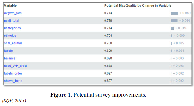 Quality prediction indices denoted sufficient confidence in the survey design. Potential improvement of the survey in order to reach the maximum quality was possible, as shown in Figure 1. The average improvement coefficient was +0,049 or 5%.