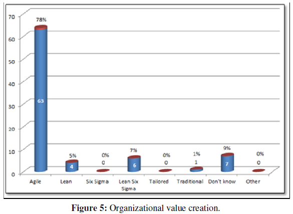 Overwhelmingly, responses (78%) indicate that the organizational value creation is influenced by agile factors, as shown in Figure 5. There are four generic determinants of value creation (Pitelis, 2010): a) organizational infrastructure and strategy, b) humanand other resources and their services, c) technologyand innovativeness, and d) unit cost economies / returns to scale.