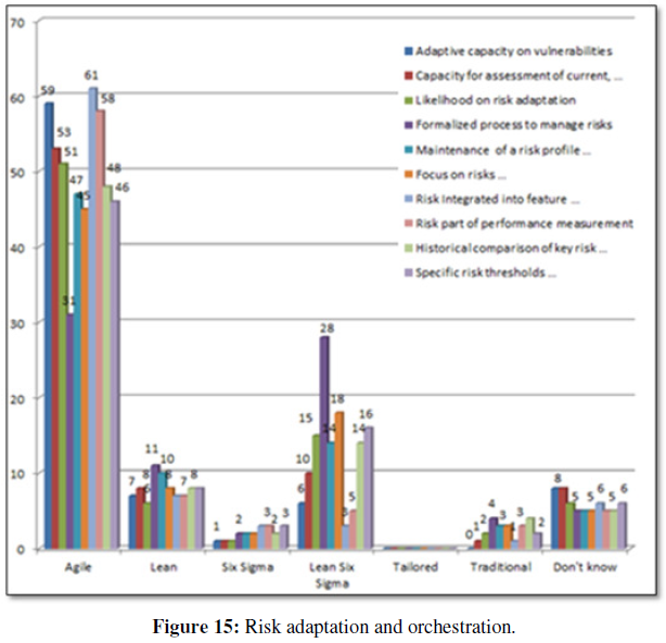 The lightweight Lean Six Sigma method follows agile with regard to the formalization of risk management process (35% respondents). It is significant to notice that respondents consider traditional method insufficiently effective in dealing with risk adaptation and orchestration.