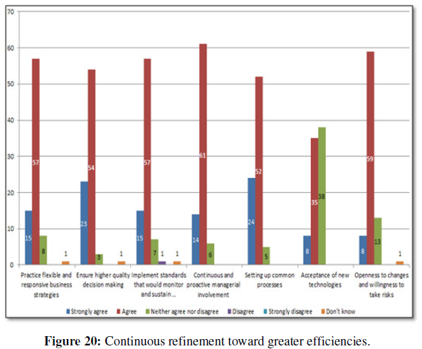Organizational competitive advantage nowadays comes from continuous, incremental innovation and refinement of traditionally structured processes that undergo a continuous process of incremental change and adaptation. It is indicative that the majority of respondents emphasized that managerial and leadership processes and practices require refinement in order organizations to achieve greater efficiencies, as shown in Figure 20.