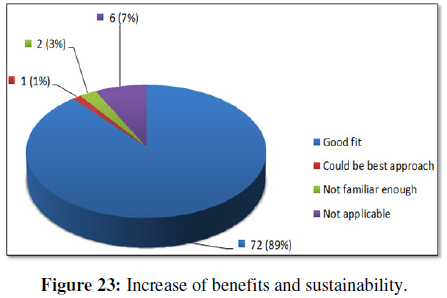 Consolidated opinions are shown in Figure 23. Vast majority of respondents (72 or 89%) consider the agile portfolio governance as a good fit for increasing organizational benefits and sustainable business values. Only minor number of respondents stated that the agile portfolio governance is not applicable (6 respondents or 7%), or not being sufficiently familiar (2 or 3%), and finally 1 respondent expressed the opinion that it could be best approach. It is to conclude that responses indicate the agile portfolio governance and its processes as a good fit for increasing organizational benefits and sustaining business values.