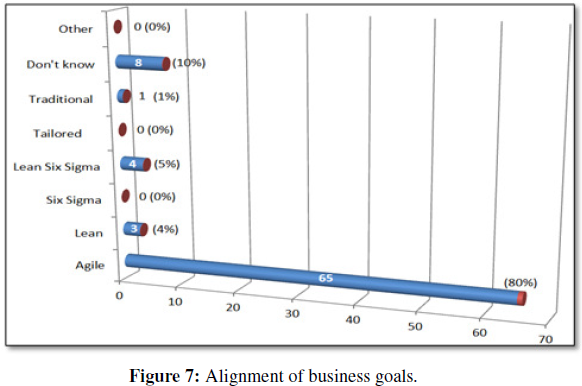 Strategy planning, organization alignment and execution are concurrent and interdependent processes. Internally integrating and aligning an organization is as important and challenging as aligning the whole organization with its customers. The survey results shown in Figure 9 designate agile methods as prevalent in alignment with strategic planning and organizational operational processes. It is important to stress that 10% of respondents are not familiar with this process.