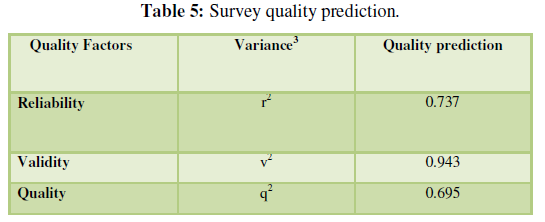 Table 5 shows survey quality factors, their variances, and the survey quality prediction.